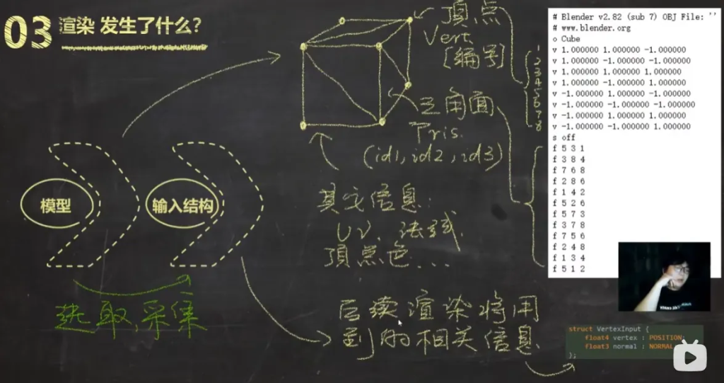 在渲染管线中,先读取模型的数据,输入到shader中;