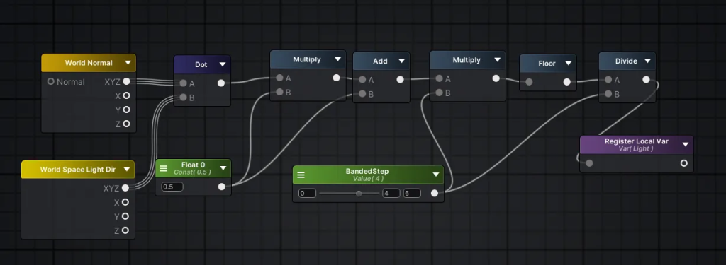 这里用到的是一个叫BandedLight的魔改的光照模型,主要作用就是给颜色增加了一个floor,像分层一样的效果。