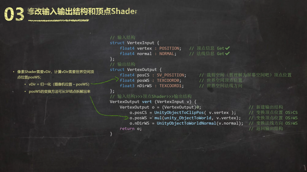 o.viewDir=normalize(_WorldSpaceCameraPos.xyz-TransformObjectToWorld(i.vertex.xyz));